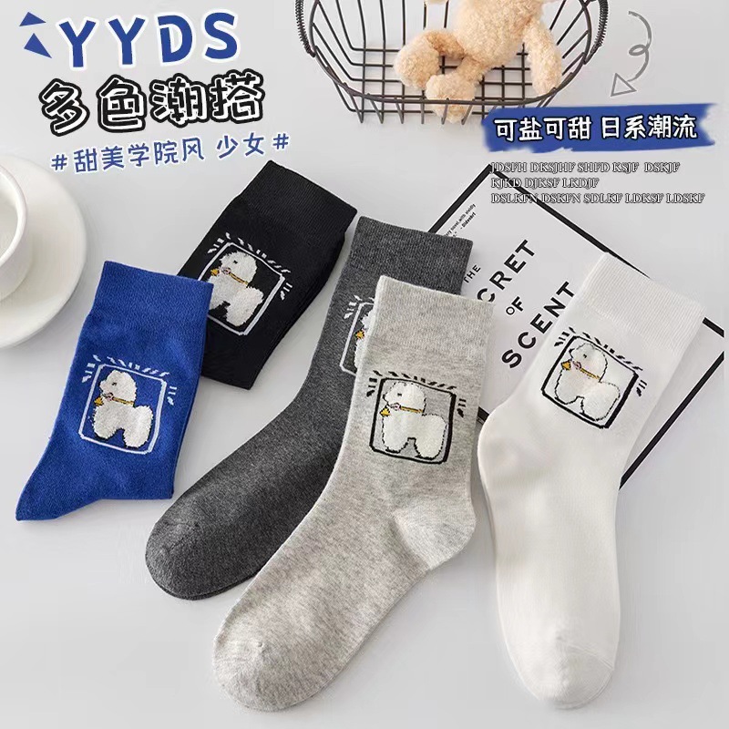 アルパカの靴下の女性の中筒の靴下の秋冬は厚い金の韓国のアニメのかわいい日系のストッキングのinsの潮の春秋の綿の靴下を加えます。