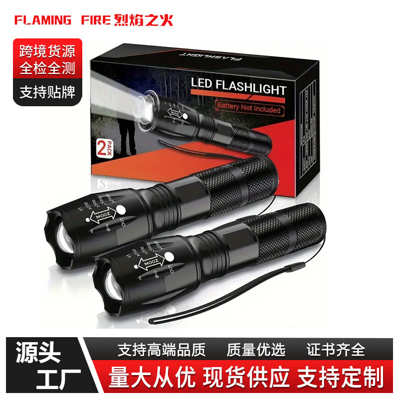 Temuクロスボーダー伸縮ズーム強光アルミ合金懐中電灯防水屋外夜ランニングパトロール懐中電灯卸売り