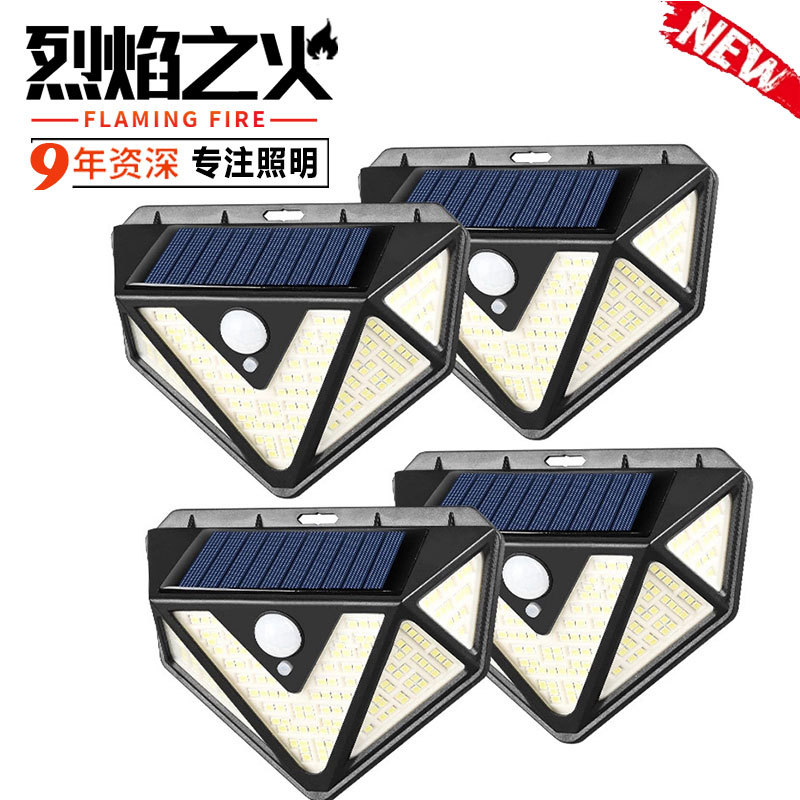 新品100ledソーラーウォールライト庭4面発光ソーラーライト人体感応防水アウトドアライト