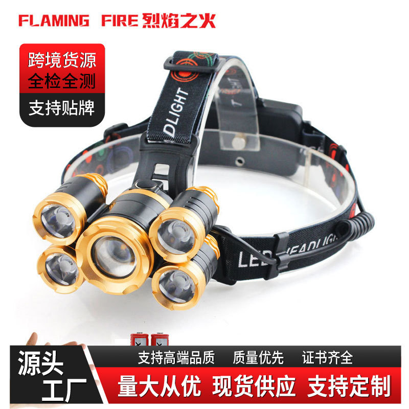 国境を越えた新型5led飛行機灯焦点調整誘導t 6強光ヘッドライトサーチライト防水リチウム電気釣り灯