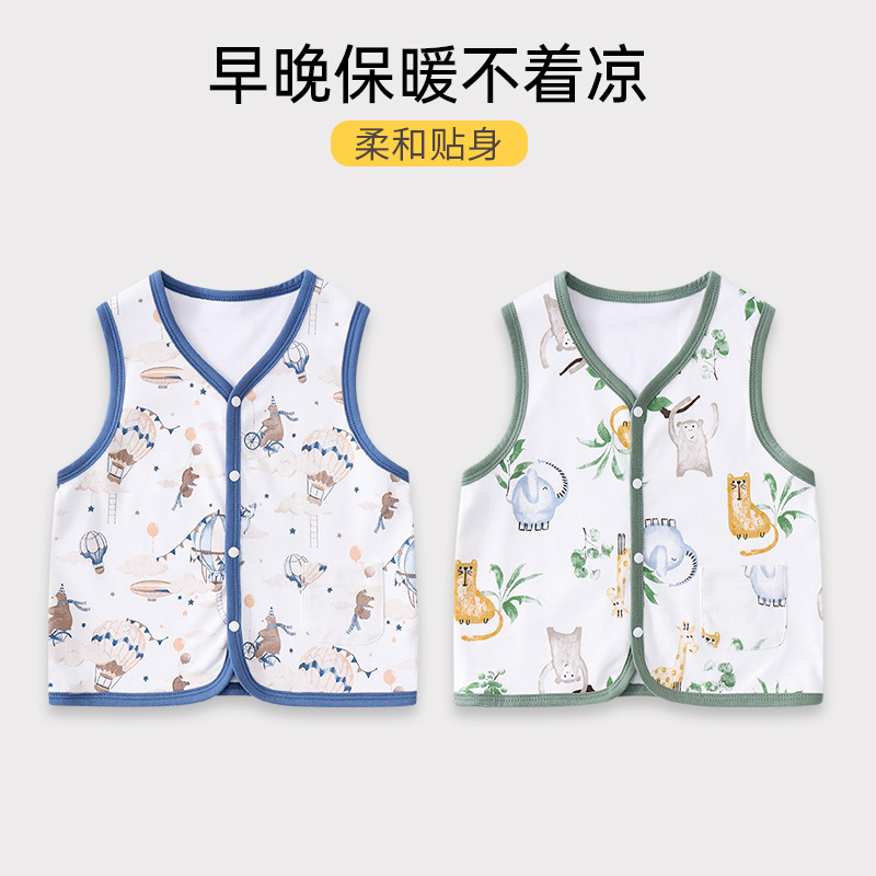 赤ちゃんの馬甲は春秋外に赤ちゃんの馬を着てベストを挟んで秋冬に二重の男女の小さい子供の薄いタイプの肩を詰めます。