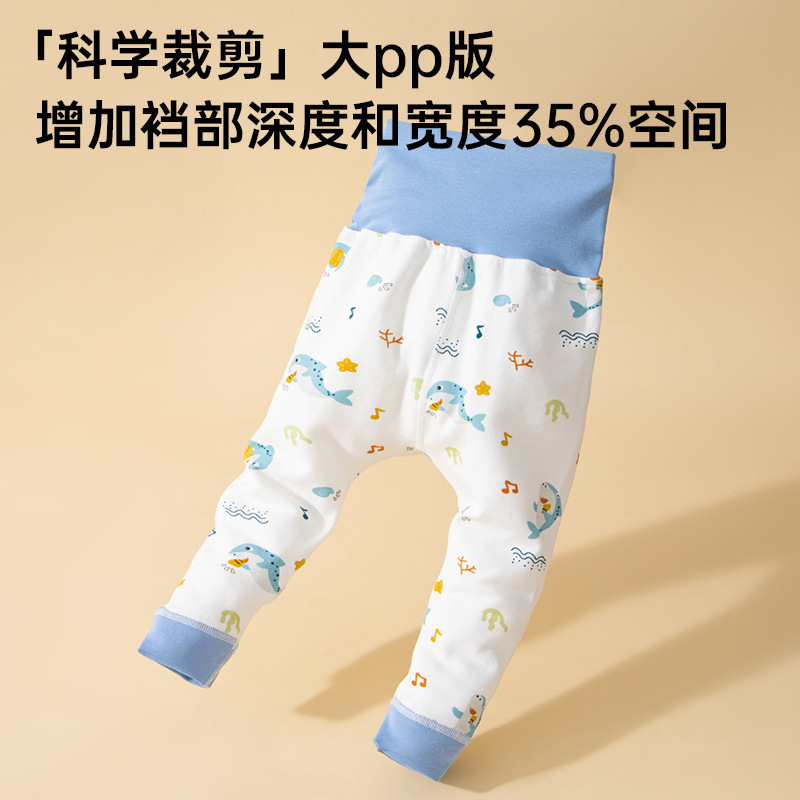 赤ちゃんの腰の高い腹のズボンの純綿の春秋の赤ちゃんのズボンの股の開いているズボンの子供の睡眠の保温ズボンの中で着ます。