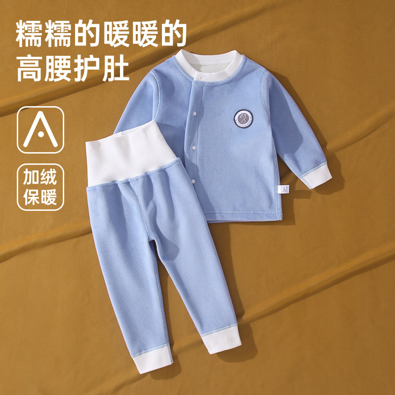 赤ちゃんのベルベットセット秋冬服男性赤ちゃん冬高腰保腹保温下着秋衣秋ズボンパジャマ