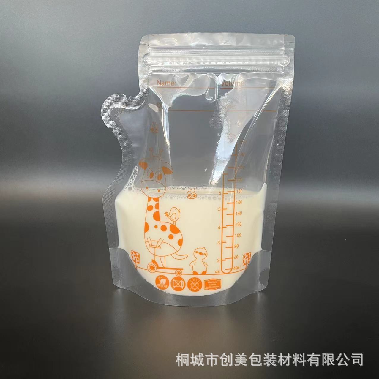 現物150mlのミルク貯蔵袋5OZPET/PE母乳貯蔵袋の漫画の図案の越境する電気商の母と乳袋