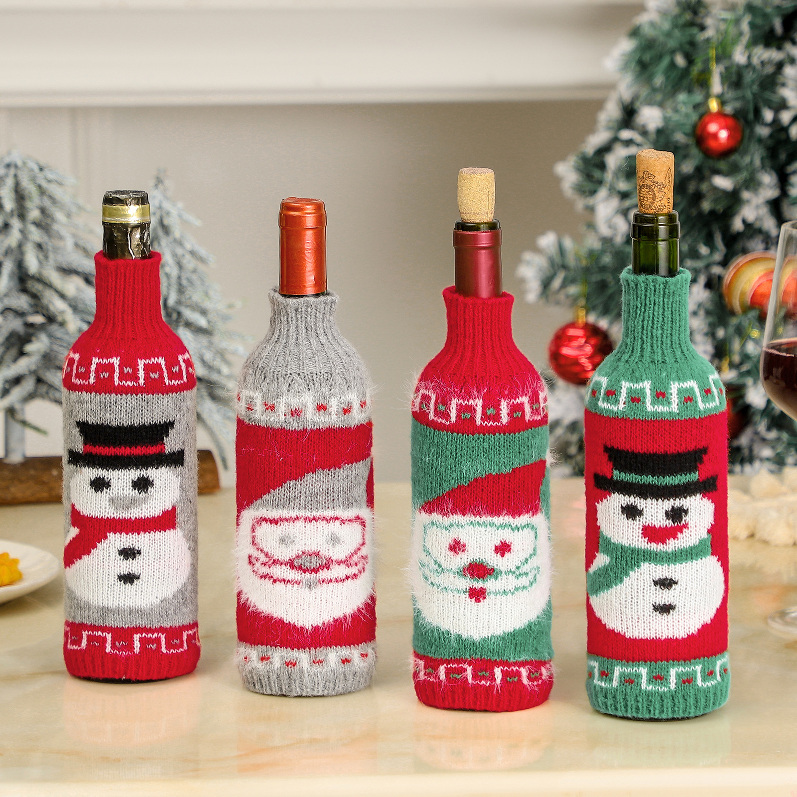 越境新品創意クリスマス装飾ニット毛糸ワインボトル袋クリスマスバーレストランワインボトルカバー