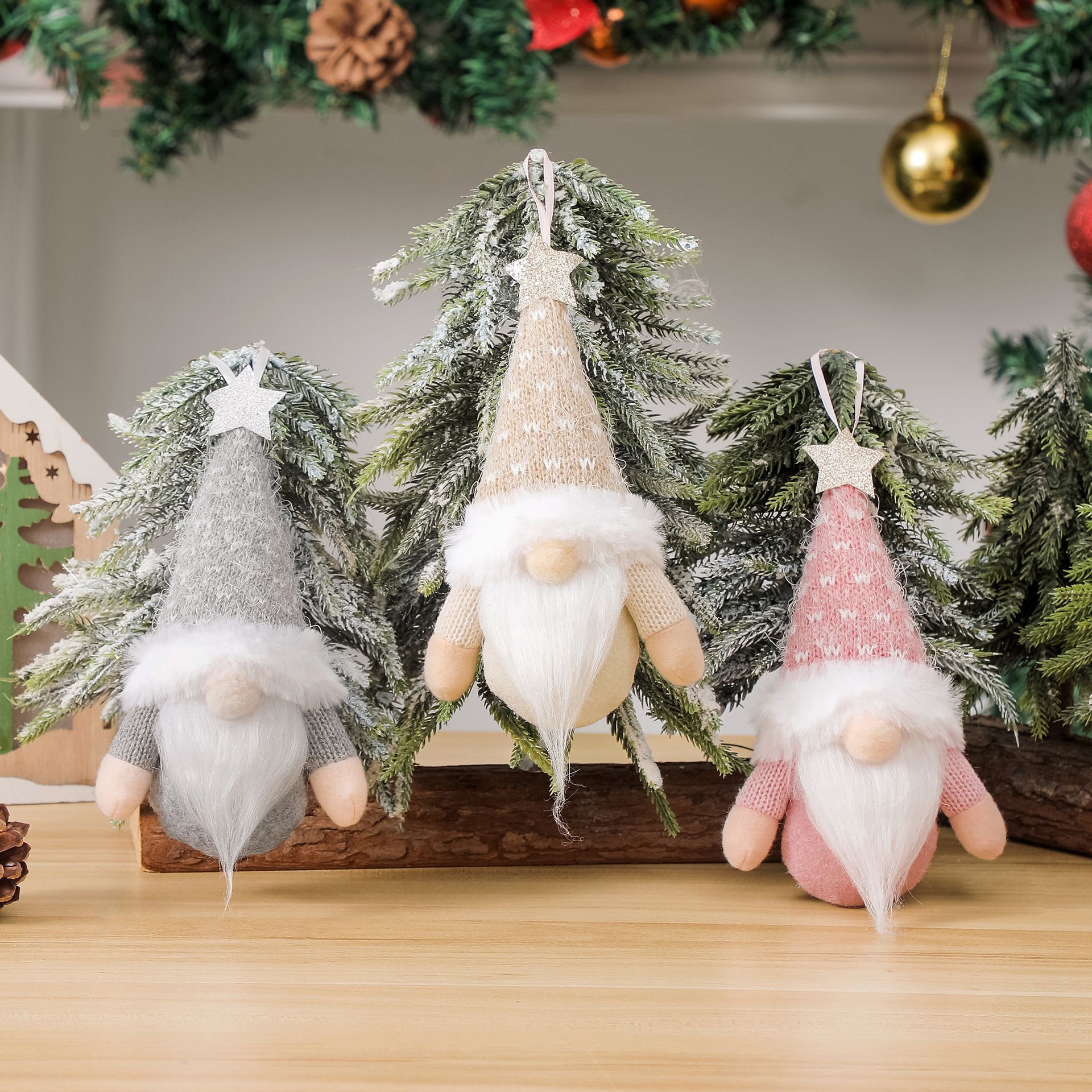 新しいクリスマス装飾品森老人五角星ニットペンダント創意無顔人形小人公仔