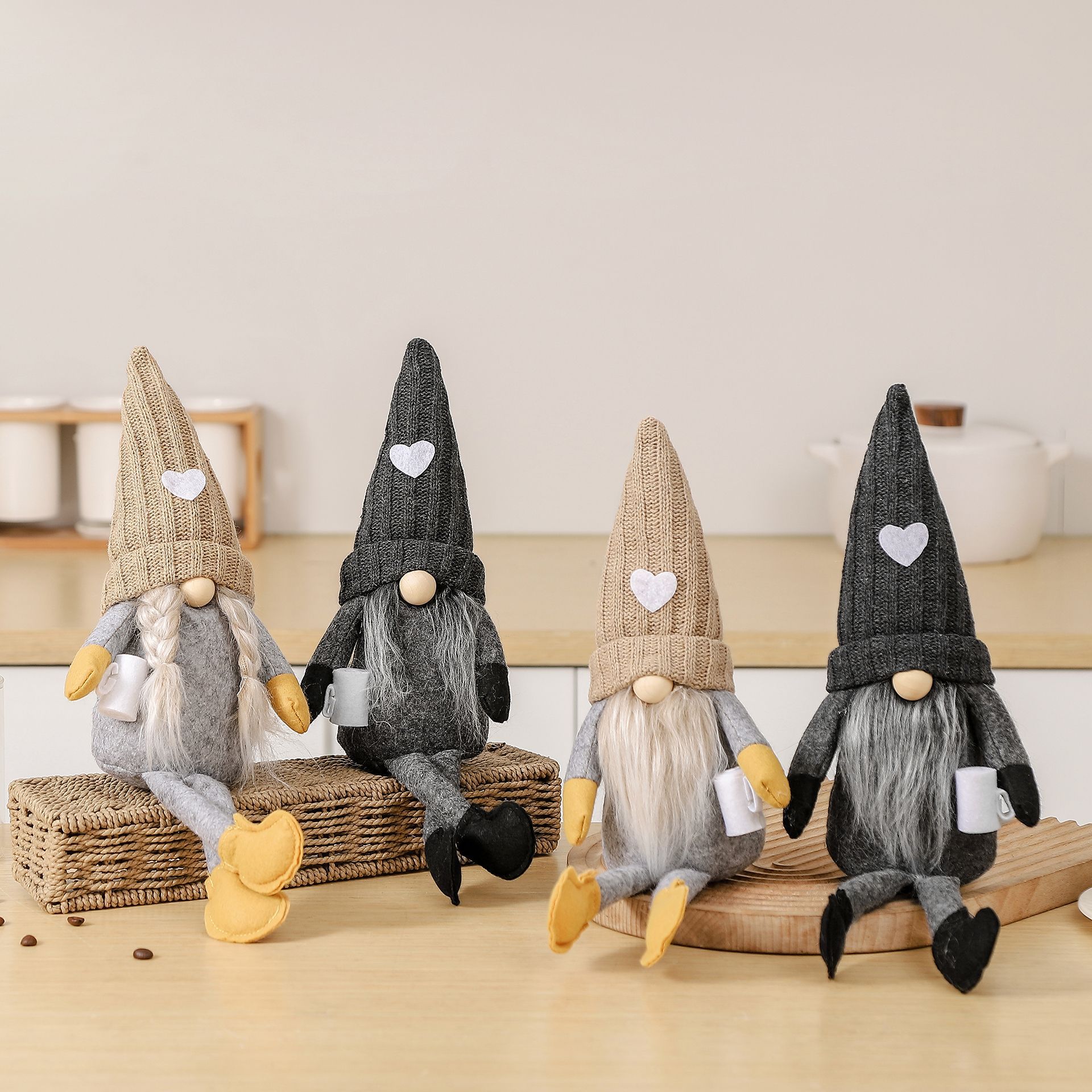 新型クロスボーダー独立駅ニット愛帽公仔アメリカ無顔人形コーヒーカップクリスマス祭り装飾品