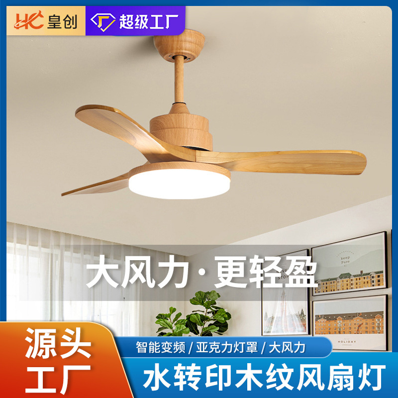 全スペクトル北欧客間ファンランプ大風力レストラン寝室インバータランプ家庭用実木吊りランプ