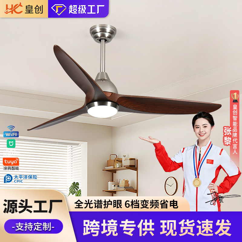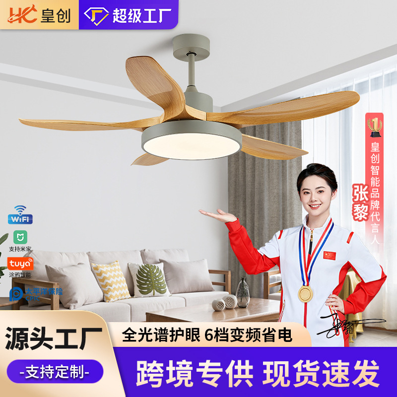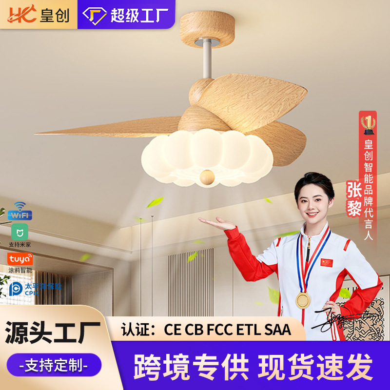 子供部屋木製リーフファンランプレストラン北欧シンプルなリビングルームランプ統合ファンランプクロスボーダーインテリジェントリモコンシーリングファン