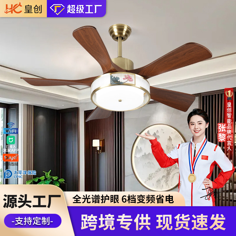 伝統的な家庭用客間シャンデリア扇風機一体寝室書斎知能インバータレストランledファンランプ