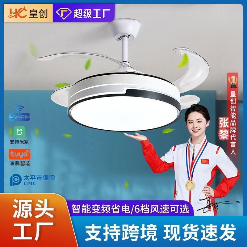 目に見えないシンプルなファンライト北欧リビングレストラン家庭用扇風機ライトクロスボーダースマートリモコン天井シーリングライト