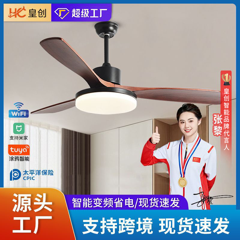 北欧実木吊り扇灯知能音声扇風機灯インバータ遠隔レストラン客間天井ファン灯工場
