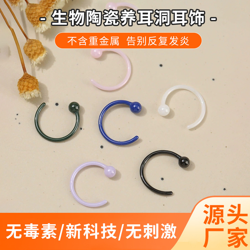 バイオセラミック低刺激性リップリング、馬蹄リップリング、C型オープンノーズリング、ヨーロッパとアメリカのクロスボーダーバイオセラミックジュエリー