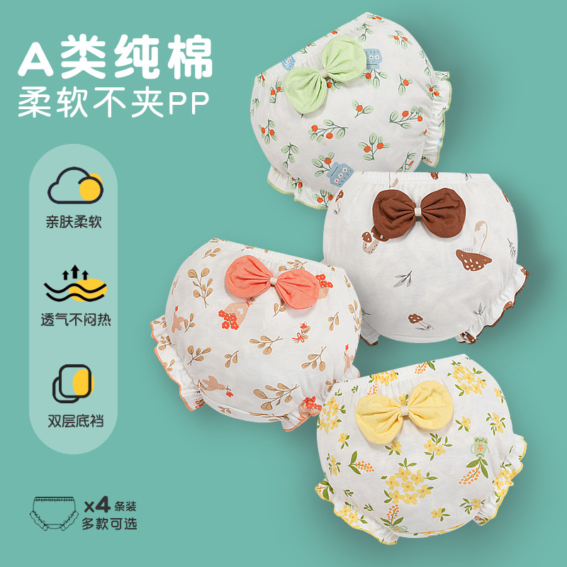 2025 子供用下着女の子純綿カテゴリー A ベビー男の子三角リボンパン綿ショーツお尻を締め付けません