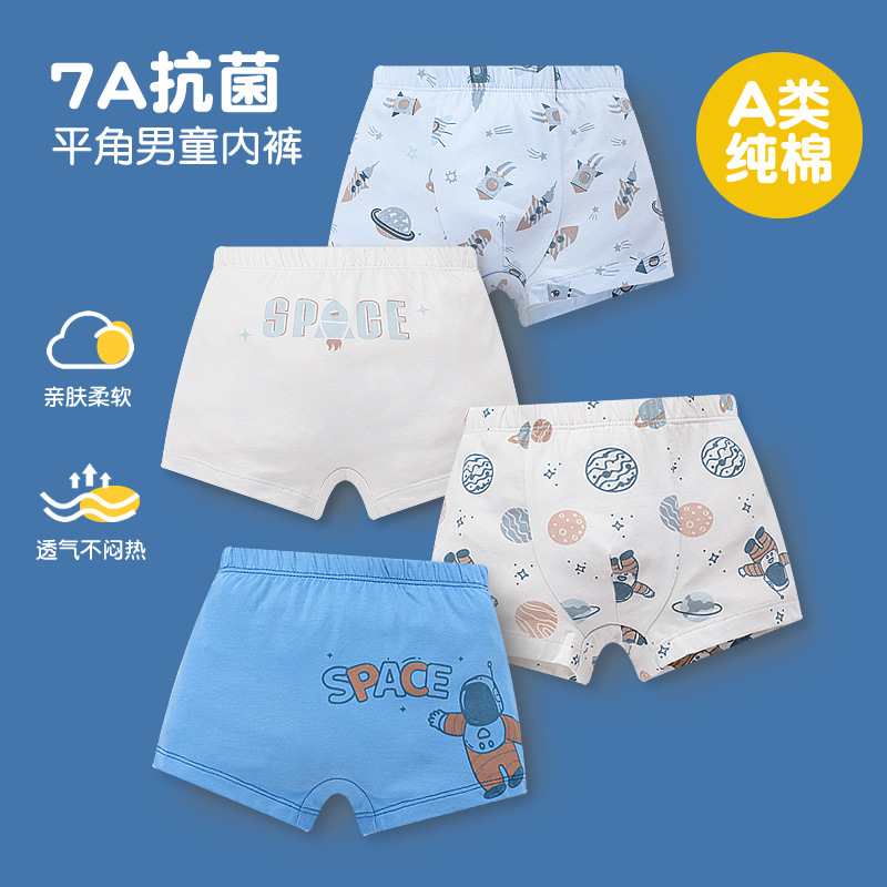子供用下着 男の子 A級純綿 中高学年向け ボクサーパンツ 四角パンツ 通気性 ベビー漫画柄 男の子 四季対応