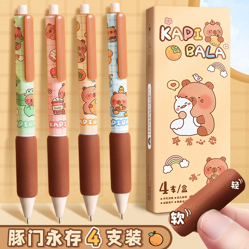 カピバラ中性ペン押し高颜値速干ソフトホルダースポンジ黒ペンサインペンST専用ブラシペン