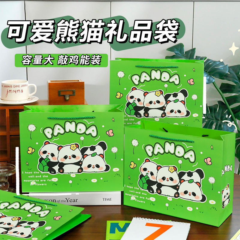 パンダギフトバッグ漫画手提げ袋誕生日プレゼント包装袋高颜値創意プレゼント紙袋卸売り
