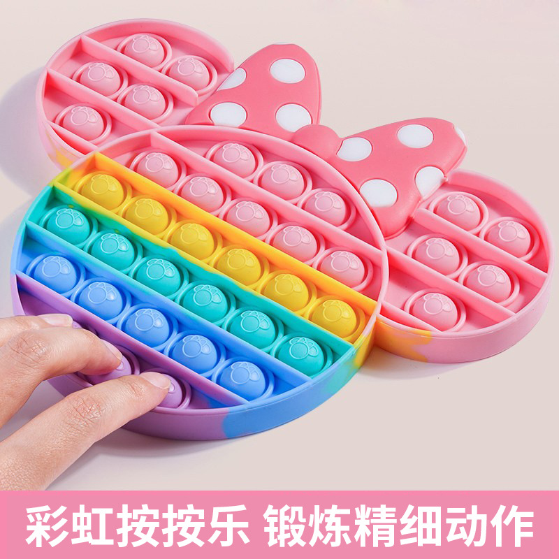 赤い虹は子供を押してシリカゲルの指をつまんで板の益智の小さいおもちゃを減圧します。