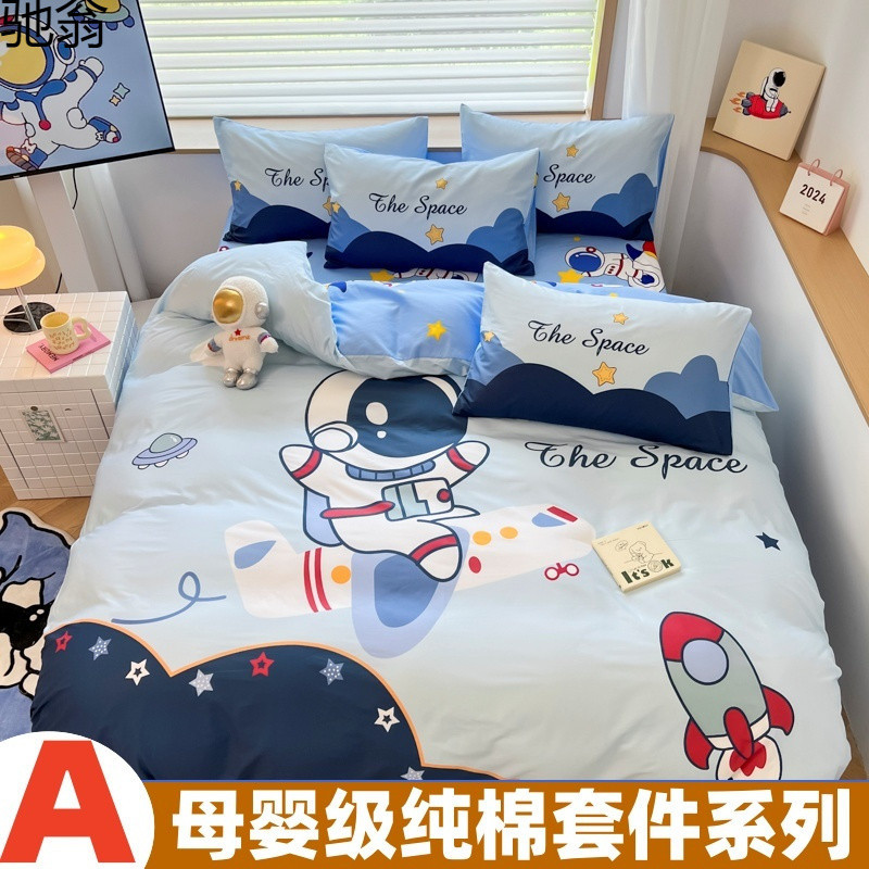 Q3Y 宇宙飛行士クラス A 綿ベッド 4 点セット男の子 3 点セット子供部屋漫画キルトカバー学生寮