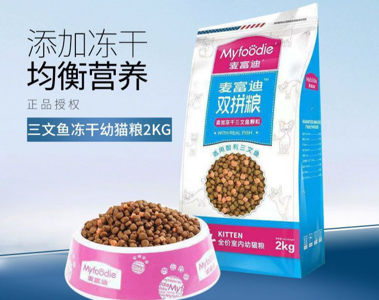 McFoody ダブルキャットフードには、屋内成猫および若い猫向けのサケのフリーズドライ顆粒が添加されており、一般的な主食です。
