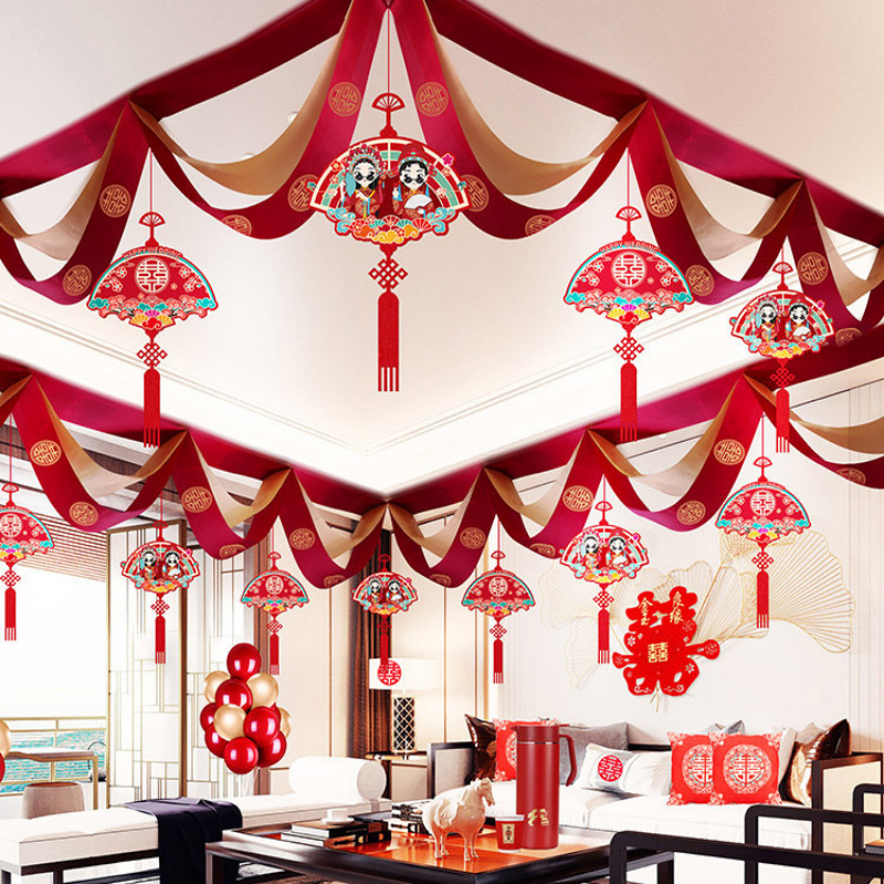 結婚式のリボン、花のリボン、男性の結婚式の部屋の装飾セット、家の装飾、天井の装飾、リビングルーム、舟沢