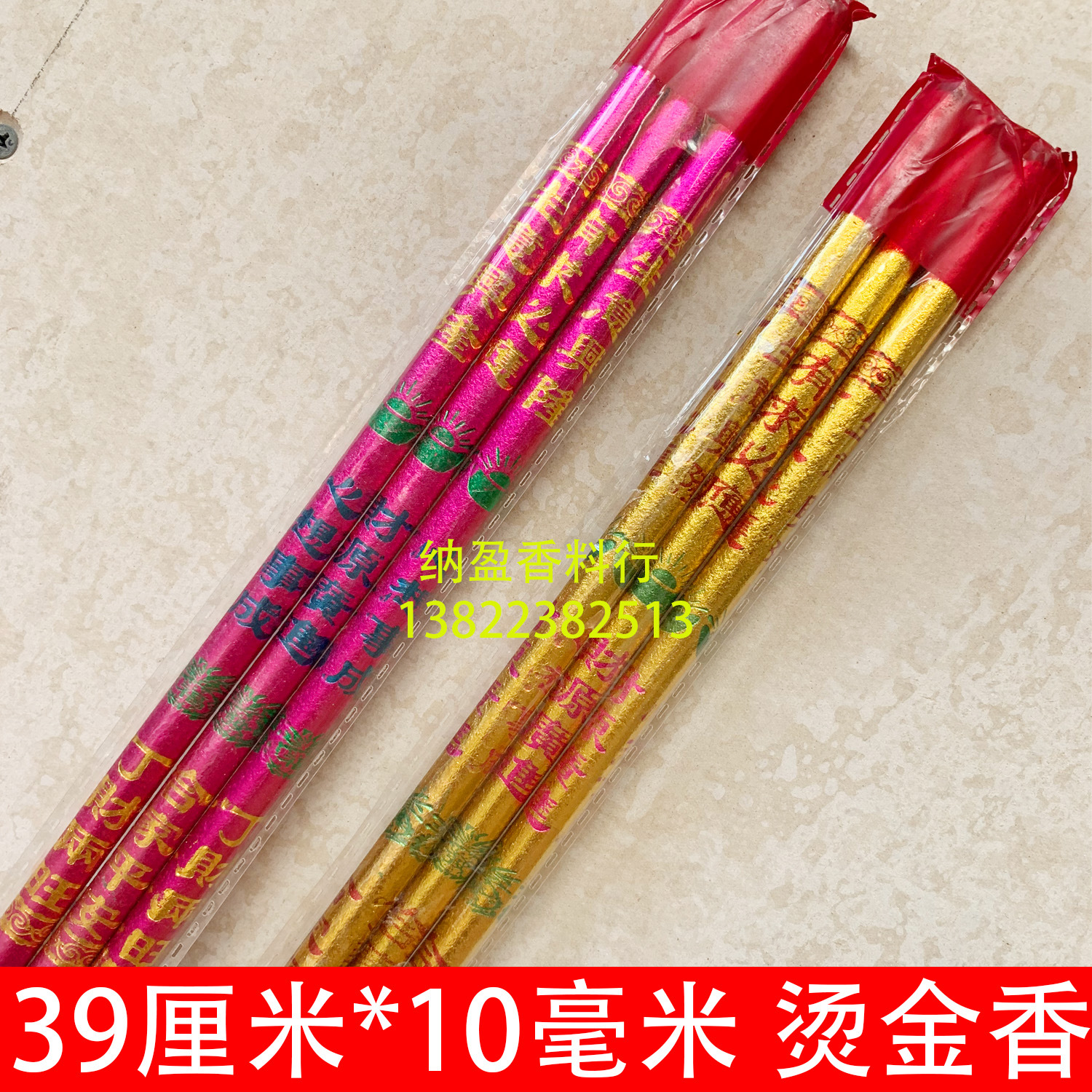 メーカー卸売り金上金箔押し香39センチ10ミリ3本の赤い金色の家庭寺院の供養香