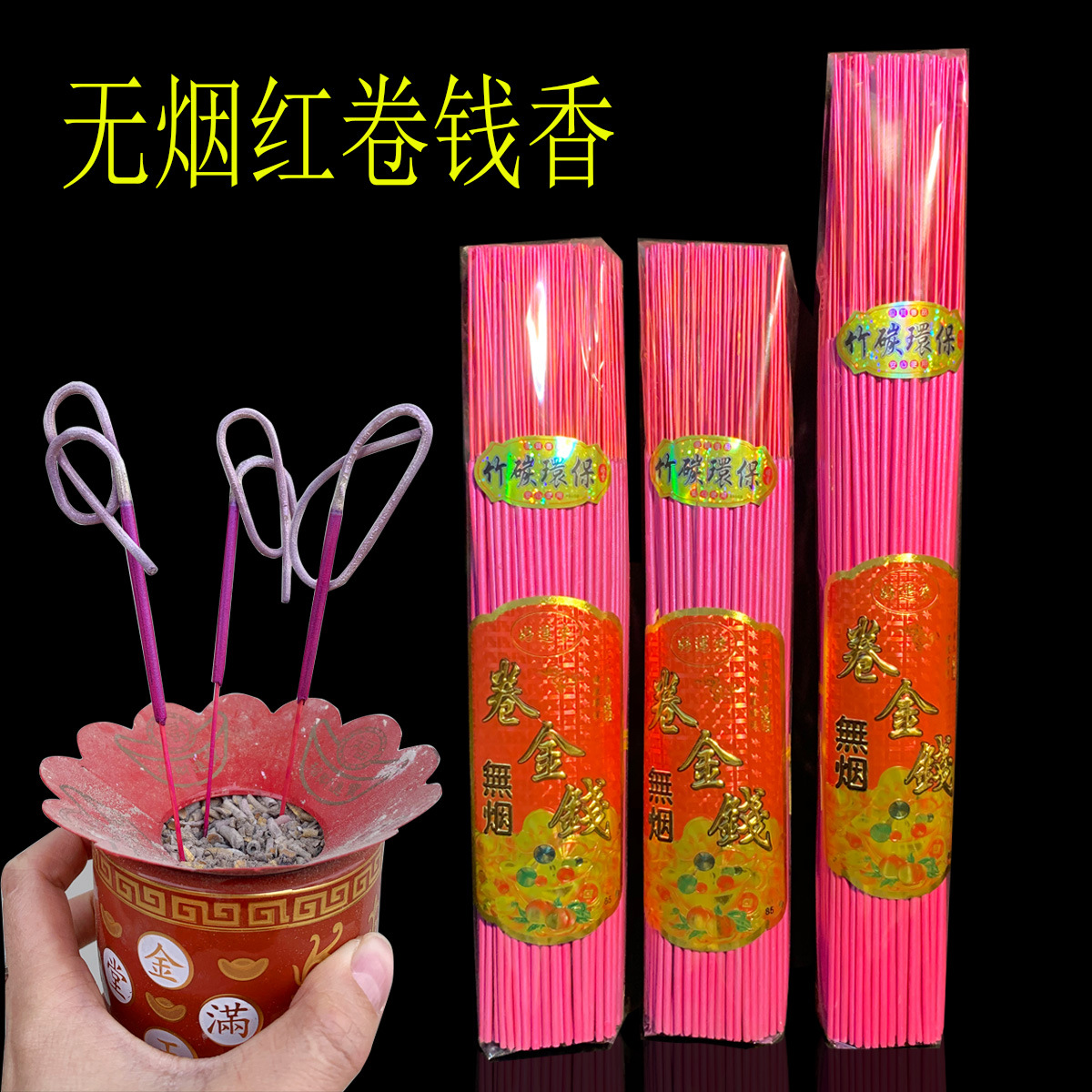無煙紅巻き銭香黄金巻き銭勾財香財神招財香微煙家供仏香薫香竹串