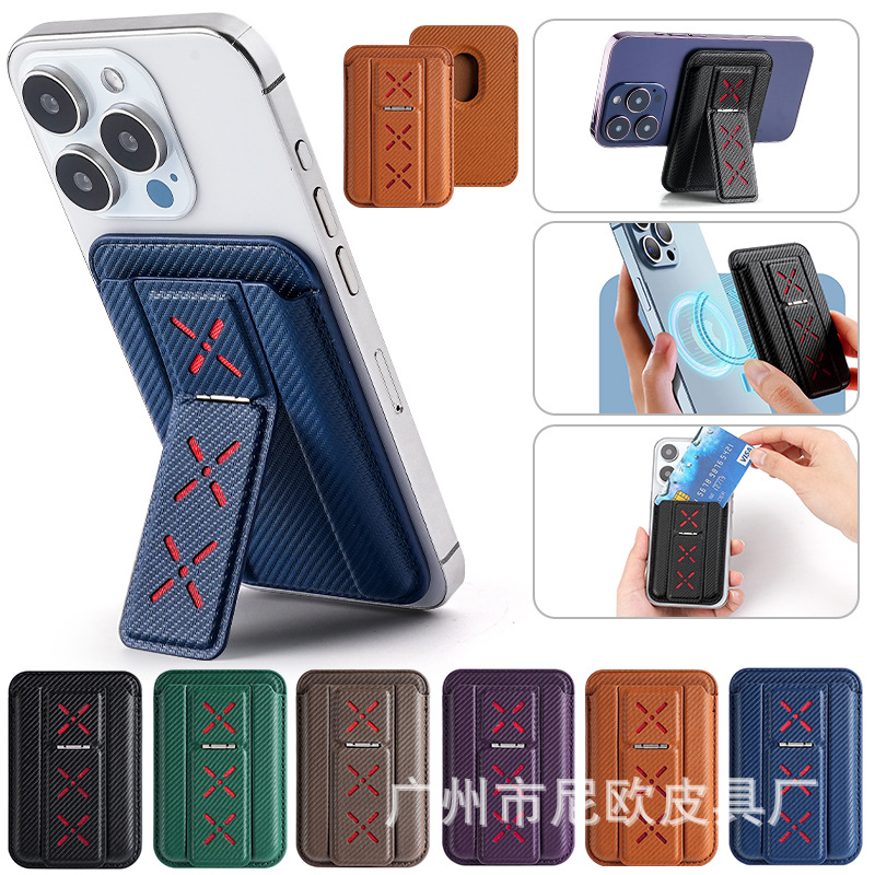 适用iPhone磁気吸引ブラケットカードバッグ革デスクトップ携帯电话の携帯电话のマグセーフバックホルダーポータブル折りたたみ