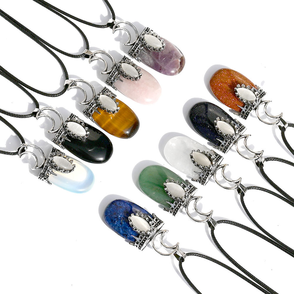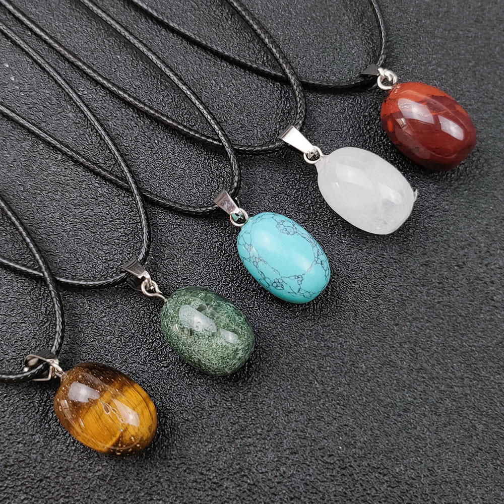 天然水晶瑪瑙玉半宝石楕円小ペンダントランダム混色ネックレスアクセサリークロスボーダー新品
