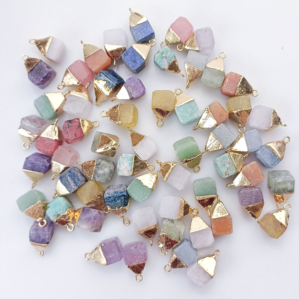 12生辰宝石方形小ペンダント海藍宝天河石鉱石ブドウ石紫晶小ネックレスdiy部品