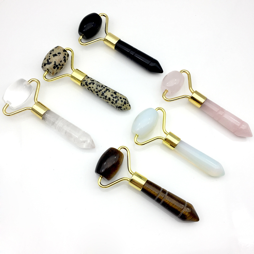 天然パウダーローラー美颜器白水晶シミプロテイン虎眼石黒瑪瑙マッサージ器2頭ダブル用