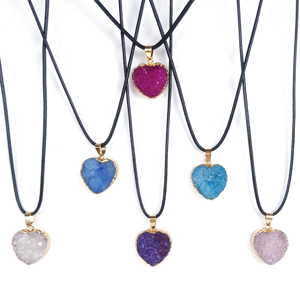欧米のアクセサリー水晶の結晶のクラスターの電気めっきの縁の桃のハート型の多彩なネックレスの天然の瑪瑙の歯の愛のペンダント