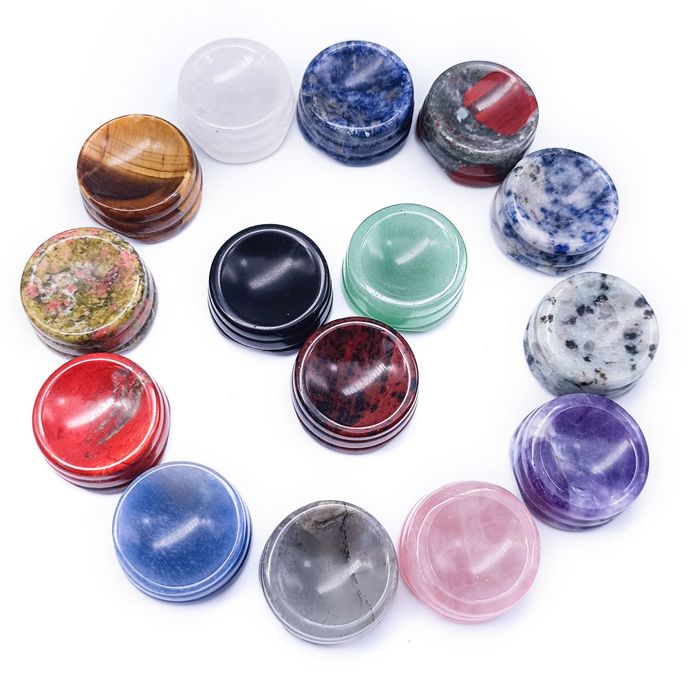東陵玉の彫刻の底の支えの棚の置物の天然水晶の粉晶の虎の目の石のボールの台の多色は選択できます。