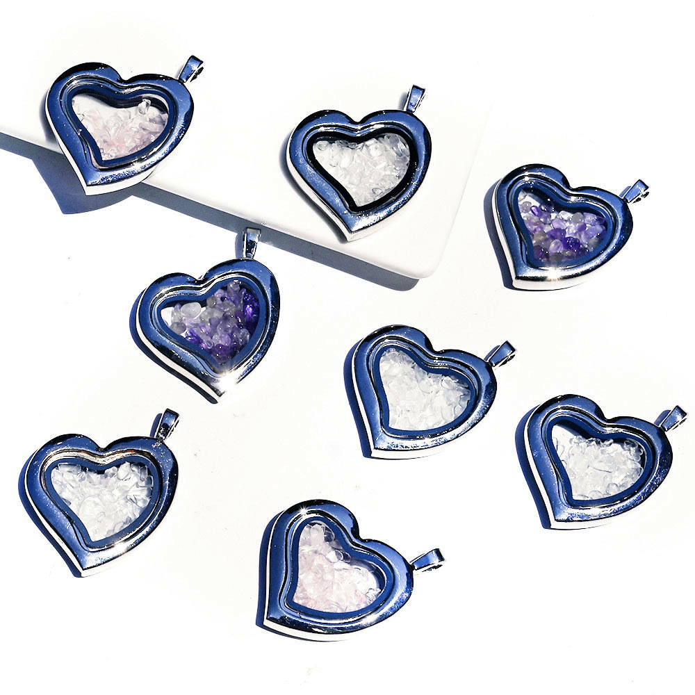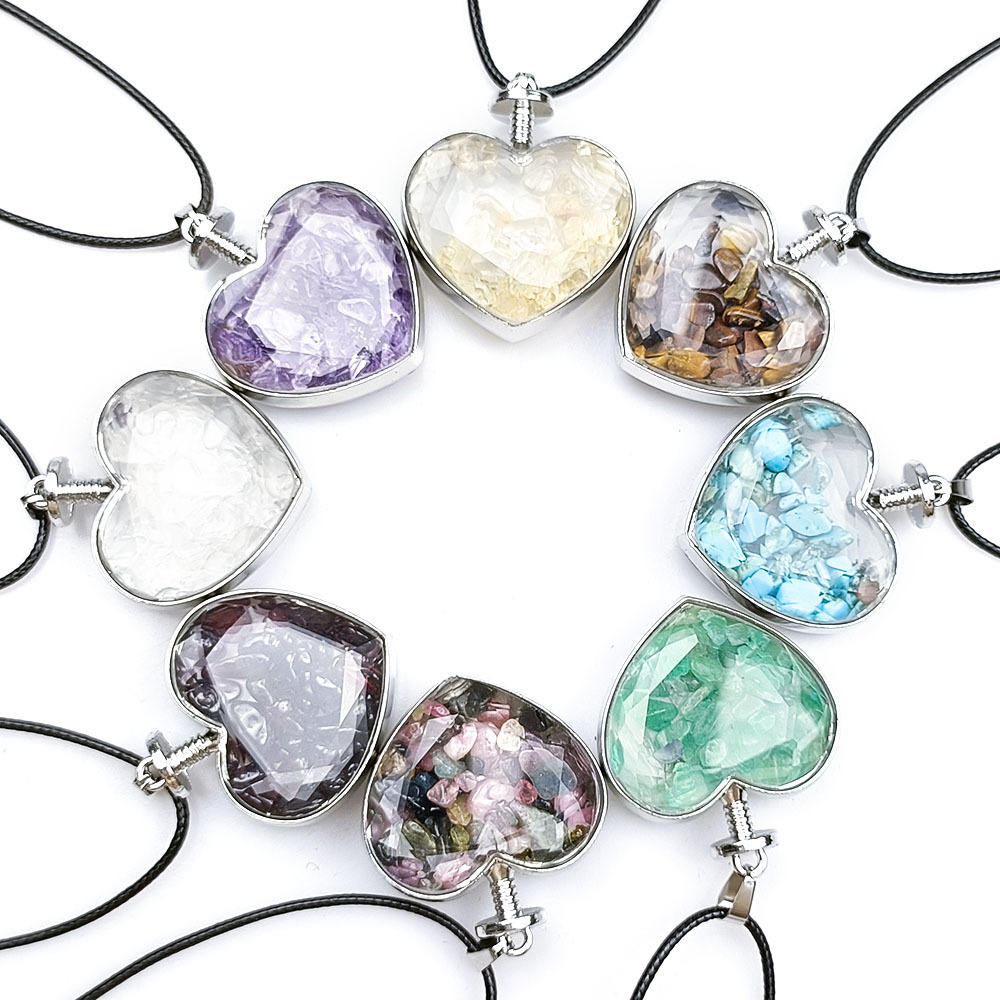 天然水晶愛願い事瓶ペンダント東陵玉桃心形状ネックレス紫晶粉晶原石砂利