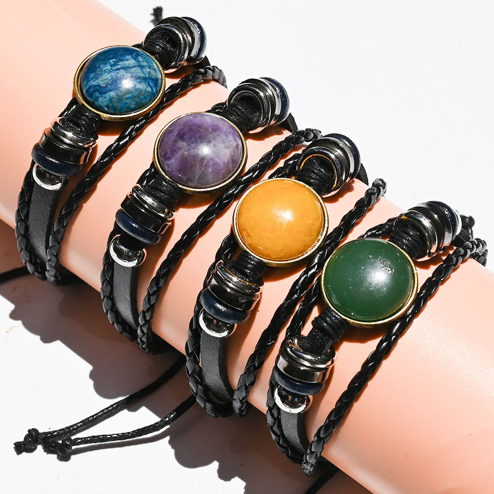 天然水晶牛革編みブレスレット虎眼紫晶東陵玉円形ブレスレット卸売りクロスボーダーアクセサリー