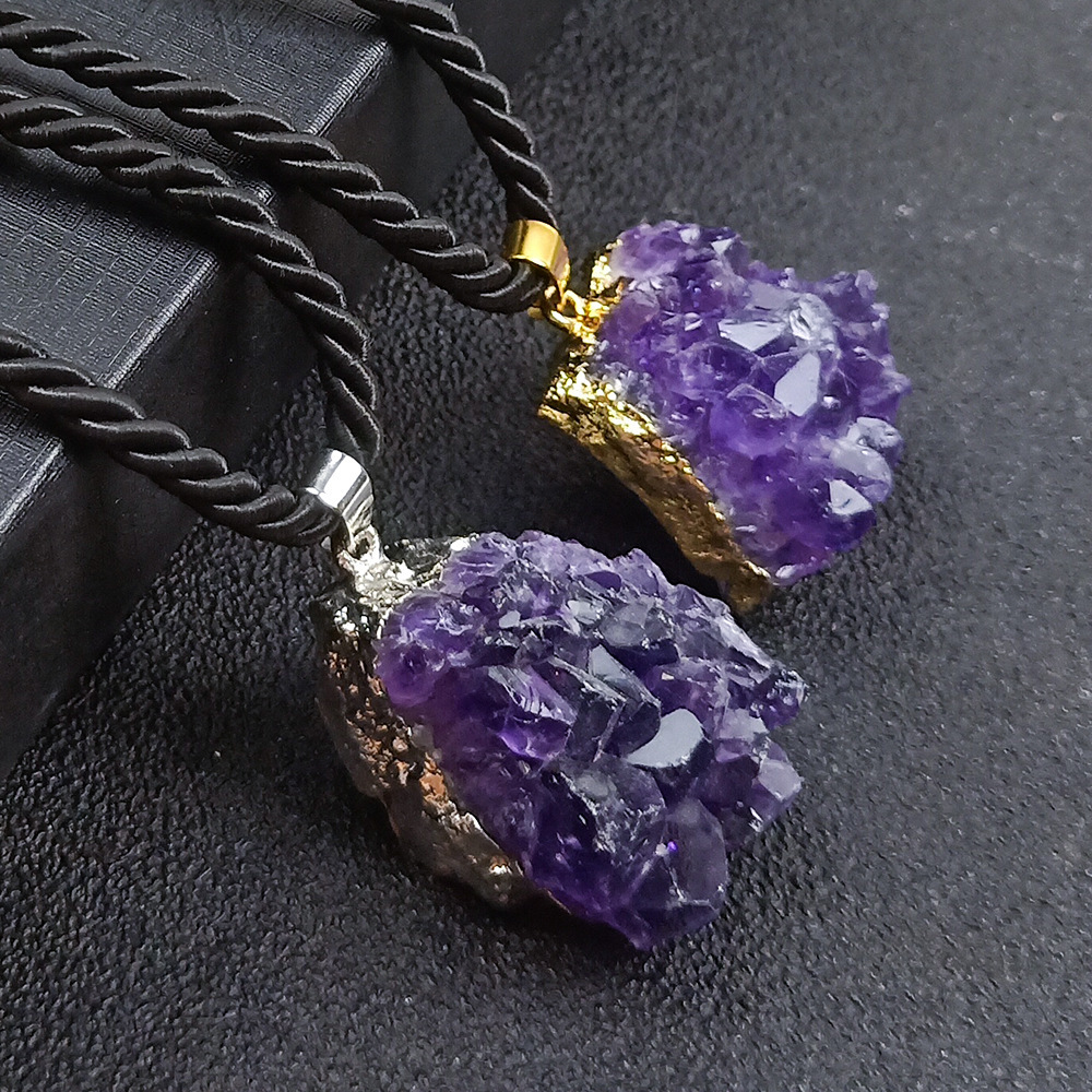 欧米のクロスボーダー新商品天然紫水晶クラスターペンダント結晶芽結晶クラスター原石ネックレス原鉱包金と銀の縁飾り