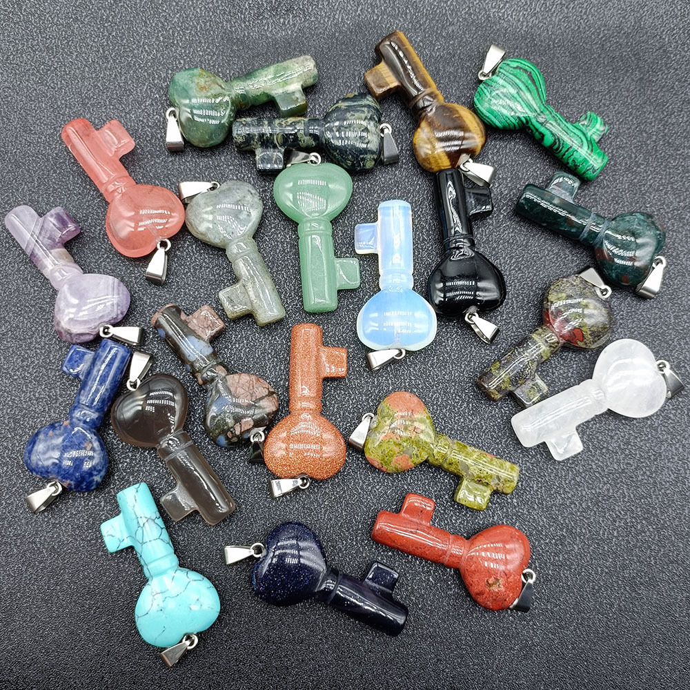 桃の心の形は愛情の鍵の天然の水晶の瑪瑙の玉の愛の鍵の形をロックします。