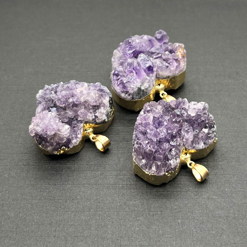 天然ウルグアイオッシュクリスタルのクラスターの愛の縁のペンダント不規則な紫色の愛のハート型のペンダントの紫晶のネックレス