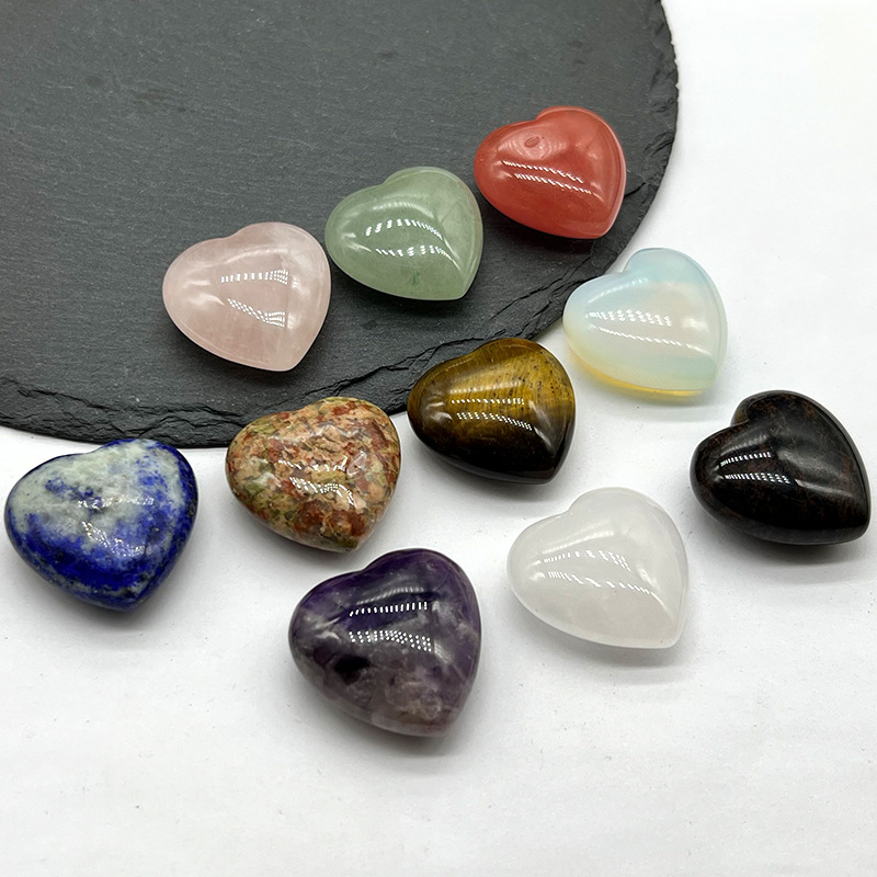30mm穴なしハート型置物天然石水晶瑪瑙緑東陵粉水晶愛宝石工芸品桃心