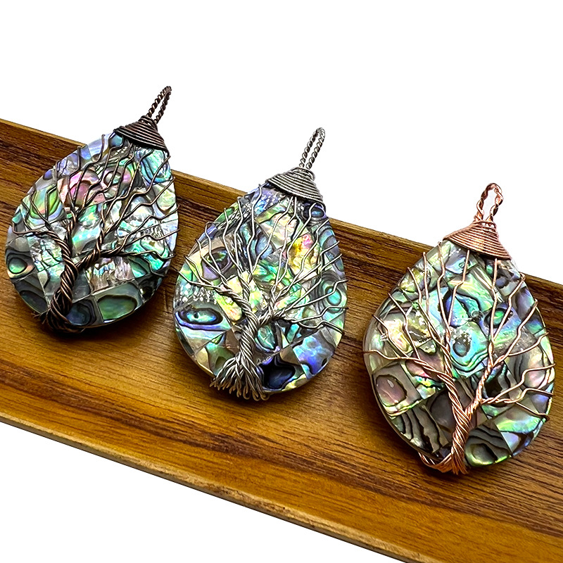 天然水滴アワビ貝殻フォーチュンツリー巻き付けペンダントDIYアクセサリー男女兼用ネックレスセーターチェーン貝殻ペンダント