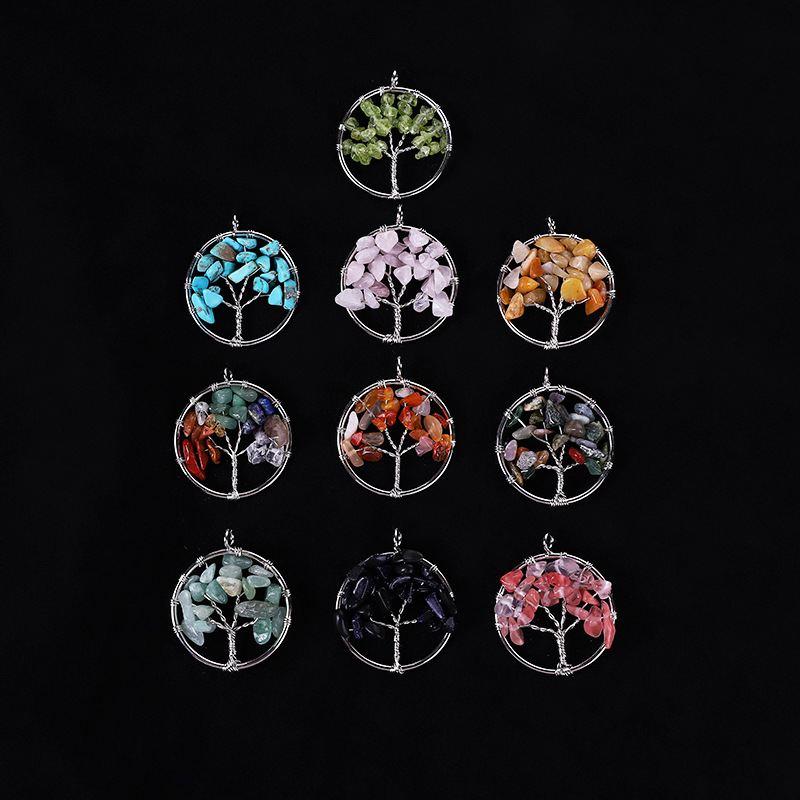 外国貿易の天然水晶の石の生命の木の七色の天然石の金持ちの木のネックレスの宝石の糸のペンダント