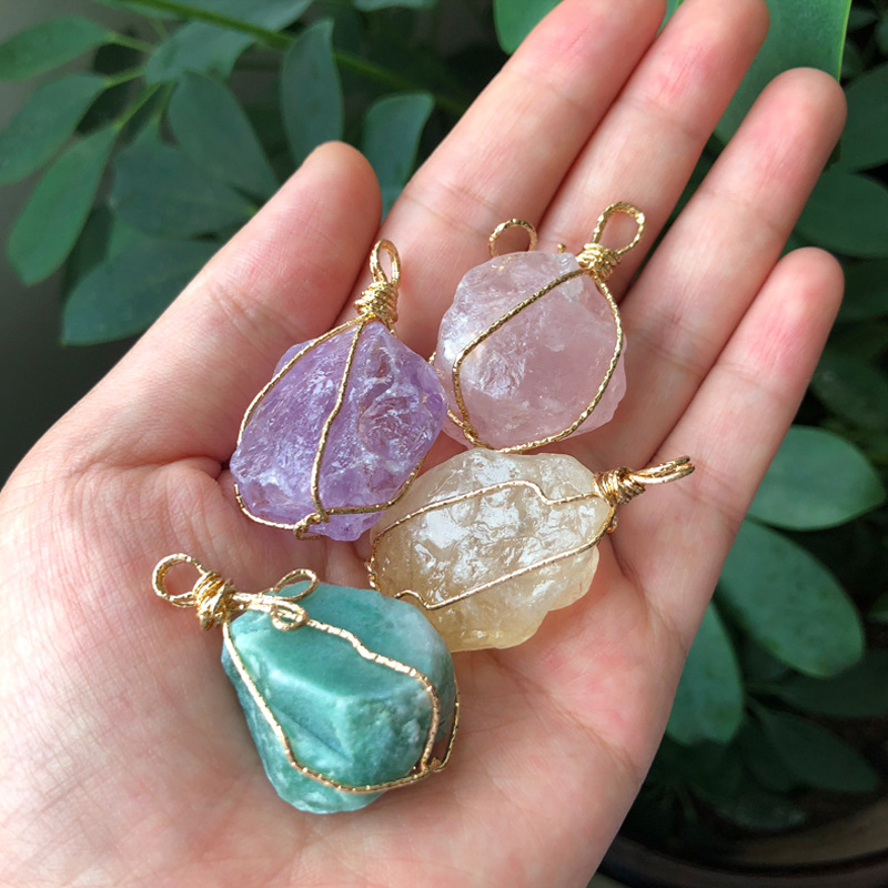 ヨーロッパとアメリカの人気のジュエリーワイヤーラップ原石クリスタルグリーンアベンチュリンペンダント外国貿易天然石瑪瑙ネックレスファッション