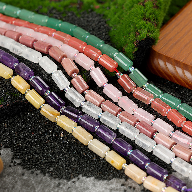 天然水晶8 * 12mm円柱管珠粉水晶紫水晶東陵玉diy散珠手飾り石部品