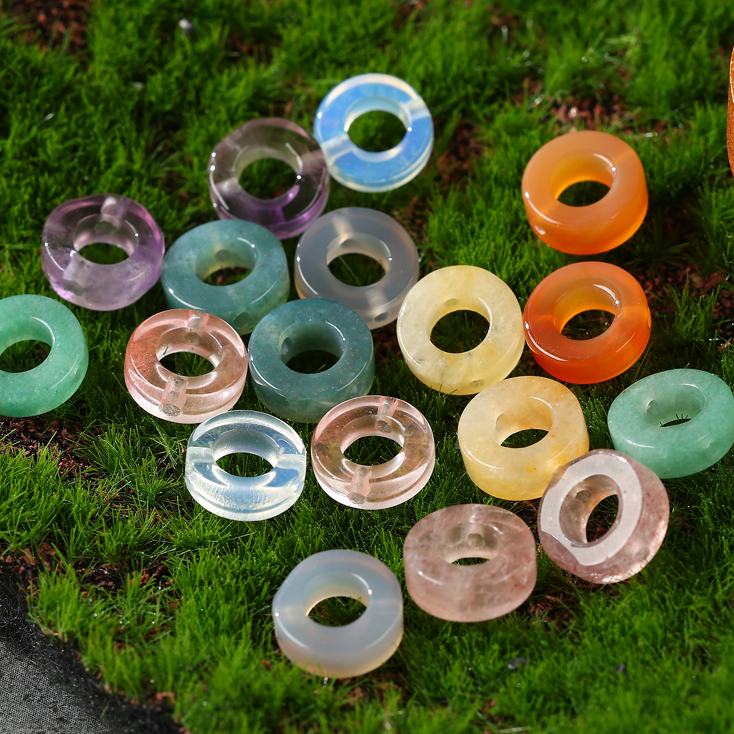天然石大穴ビーズ20mm穴径8mm緑東陵瑪瑙水晶散珠隔珠diyかんざし手串ペンダント
