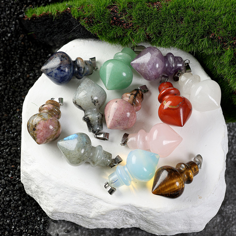 クロスボーダー天然石水晶円錐霊振り子ペンダント紫晶東陵玉銀河玄幻大腹桃椎体ペンダント