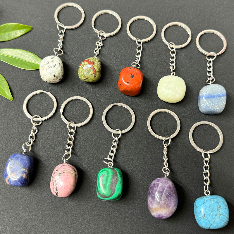 天然水晶転がり石ステンレスキーホルダー手作りdiy研磨鉱石宝石装飾ペンダント原石