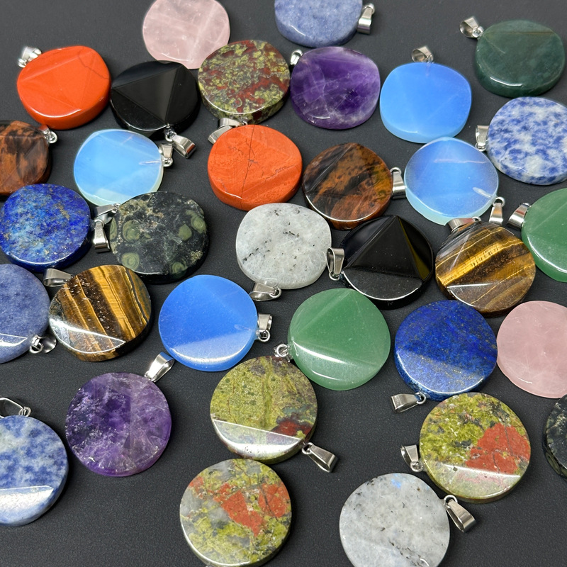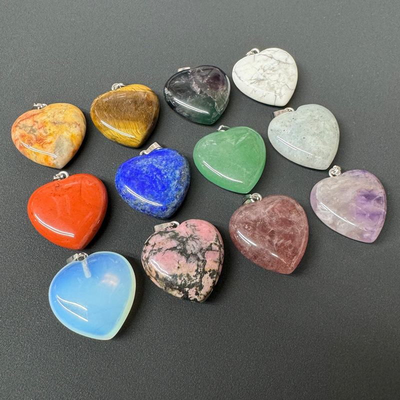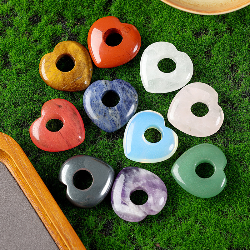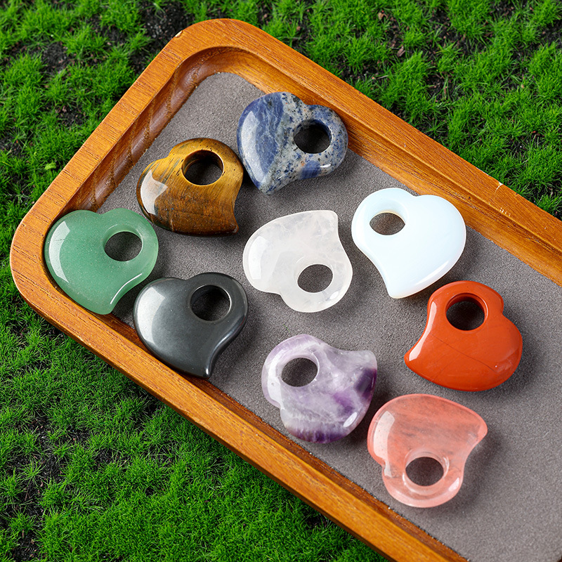 25mm穴付きハート型ペンダント天然石水晶瑪瑙緑東陵紫水晶愛宝石工芸品桃心