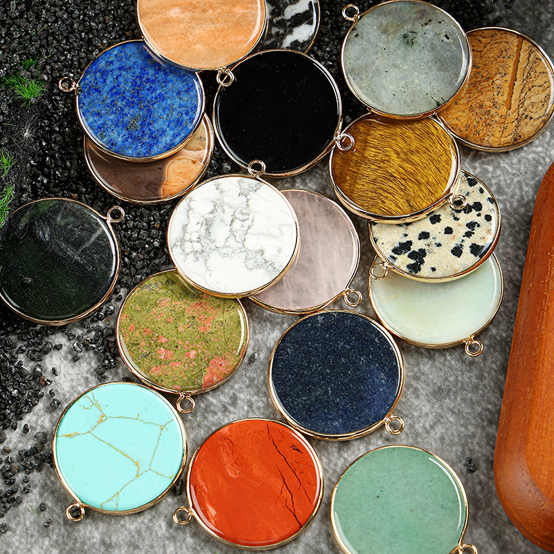 ピンク水晶円形ペンダントネックレスアマゾン粉東陵緑松石円片包金辺個性気質アクセサリー