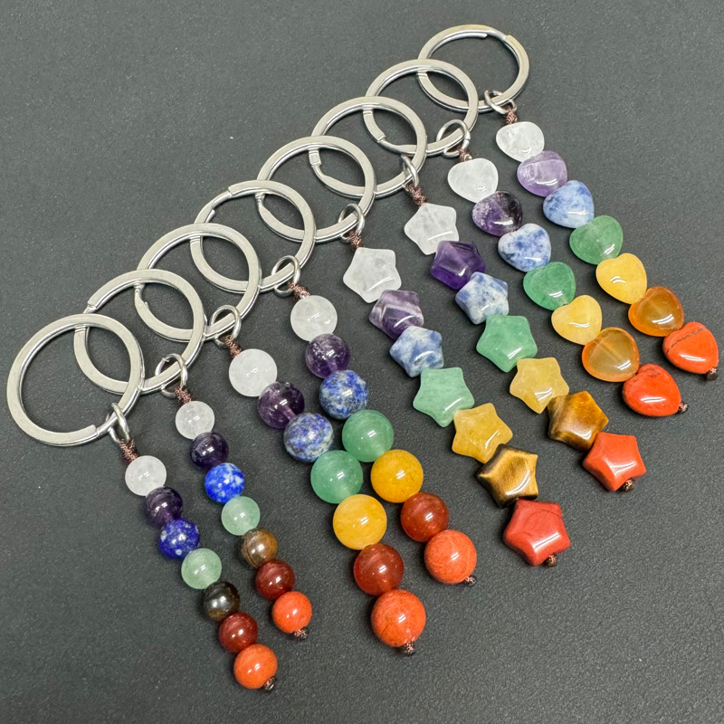 国境を越えた貿易天然クリスタルニッチ五芒星ピーチハートラウンドビーズメタルキーホルダーアクセサリージュエリー荷物ペンダント