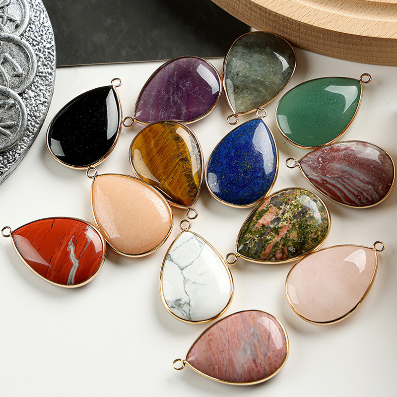 天然水晶水滴25*35mmペンダント金メッキ辺玉メノウ水滴セーターチェーンネックレスアクセサリー